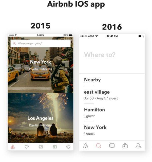 虽然一个月后Airbnb的新版 UI 没有像 Instagram 发布新设计界面时那样被大肆报道(可能是因为它没有换一款让人眼前一亮的应用图标),它还是遵循了很多“界面简化”的要点的。